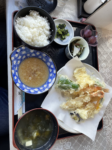 Read more海産物を中心にした定食屋さんです。499号線海岸線沿いにあり軍艦島を見渡せ、景色がよいところにあります。 今回、天ぷら定食をオーダーしました。エビ2本とイカゲソ、白身魚、ピーマン、カボチャ、さつまいも、なすびの天ぷらとご飯、味噌汁、小鉢、漬物の定食です。程よい衣の量で周りはサクサク、エビはプリプリで美味しいです。揚げたてなのでなおさら美味しく頂きました。 食べ終えて支払いを終えて、店を出ようとしたタイミングでどしゃ降りが降りだしました。やさしい店員さんで弱くなるまで、どうぞと言ってくれ、お冷やまで頂きました。 気持ちよく、美味しいランチが頂けま...