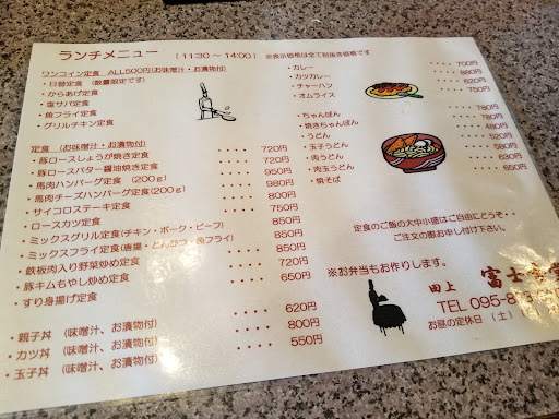 長崎市田上にある定食屋さんです 夜は居酒屋さんとして営業されているようです! ランチでお邪魔しました! 日替わり定食など定食類がとてもリーズナブルですが、 今回は牛焼肉丼をいただきました✨ 大盛りは+50円、特盛りは+100円です! 牛焼肉は濃いめの味つけで、ご飯が進みます! 焼肉の下に敷かれた海苔とご飯に染みたタレがまた良い塩梅です! お店の前に駐車場もあり、ランチタイムはお客様が...