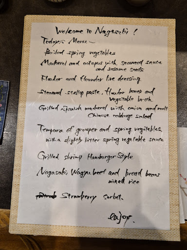 If you're looking for a culinary experience that pushes the boundaries of flavor while celebrating fresh ingredients, this restaurant is a must-try! The innovative approach to cooking, paired with a careful selection of top-notch seafood, truly sets this meal apart. Each dish is a beautiful marriage of distinct, unique flavours that showcase creativity and expertise. Chef Hiroto even went the extra mile by providing a description of dishes served tonight, making the experience all the more enjoyable for non-Japanese speakers. Thoroughly enjoyed each and every dish! This meal was hands down our favourite in Nagasaki and one we won't soon forget. A definite must-try for anyone visiting...