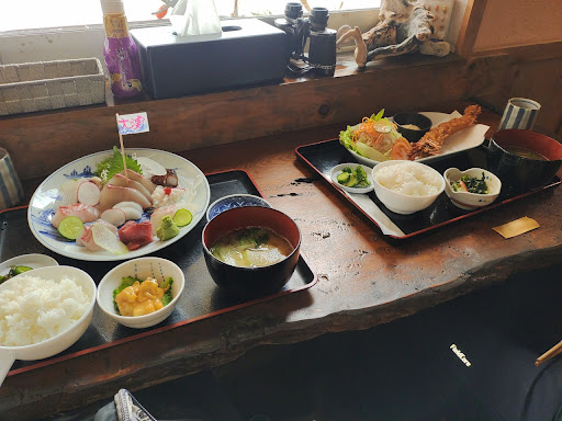 Read more令和6年7月15日午後1時頃、男二人でお世話になりました。雨だったにもかかわらず入店したとき、お店には二組のお客様がおられました。私は地魚刺身定食¥1200、友人は大きなエビフライの定食¥1200をいただきました。お刺身は本当に新鮮で種類も量も多く😋、ご飯は御代りを無料でいただきました。友人のエビフライもマグナムサイズ🦐で、彼はエビの頭を残したので卑しくも「それちょーだい☞」と、美味しくいただいてしまいました。😆本体だけでなく、つけあわせのキュウリのお漬物や、酢の物?のようなものも、とても美味しくて、久しぶりに大贅沢をさせて頂いたと大大満足させていただきました。店内には、大きな貝殻、流木、また漁業ならではのおそらく漂流物などでの粋でワイルドで清潔なインテリアがいっぱいでした。座った席の窓からは野母の漁港が一望できました。(ちなみに一番先に見えるのはホテルノモン長崎と、日帰り温泉のもん湯です。野母崎に来られた方に温泉もおすすめです♥ 私も友人も野母崎人ですが、これなら遠くからこられるお客様にも、野母崎ならではの新鮮な魚介類の料理を堪能していただけることと思います。ご店主様、奥様もとても気さくで話しやすいお方でした。本当にご馳走様でした。こっちも例の仕事を野母崎のためにもがんばりますので、どうか末永くお続けくださいますよう、お願い致します。(-人-)なお、写真と本掲載は、奥様のご許可をいただきまし...