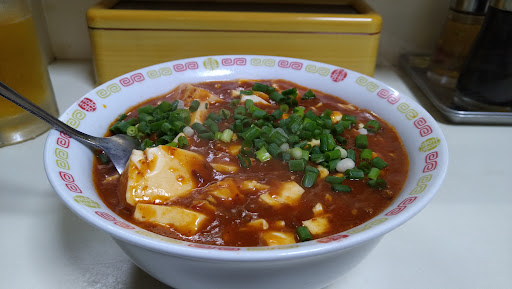 Read more外から中が見えないので気にはなって、思いきって入りました。5人くらいのカウンターと4人座りのテーブルが2つくらいの小上がり。ラーメンは塩です。バリカタの私には柔らかいかな。チャーハンは玉ねぎたっぷりにハム、玉子、ネギなどのオーソドックスなもの。冷凍ではないと思います。薄味ですね。 昼のランチの麻婆豆腐定食。初めての見た目と味わ...