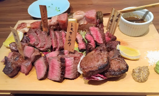 肉が美味しいというクチコミの居酒屋です。 1階は狭く感じますが、2階もあります。客席は結構たくさんある印象です。 軽く食べる気持ちで行ったので、写真の肉盛りを注文しました。第一印象はまさにインスタ映という感じでした。かなりの迫力があります。各部位の説明もつけてくれているので、親切といえば親切ですが、どうせならもう少し丁寧に書いてくれれば、インスタ映ももうワンランク上がりそうです。 肉も程よくいい感じで焼けてますので、レア苦手な私でも美味しく食べられました。厚めにカットされているので、食べごたえもあります。岩塩とわさびで食べるとこってり脂も軽くなる気がして、パクパク食べられました。 店員さんは、若い方でしたが、あまり愛想が良いとは言えませんでした。呼んでも返事してるのかどうかよくわからない感じでしたし、ドリンクを持ってきても、ごにゃごにゃっとつぶやく感じで、どれが何?みたいになってしまいました。