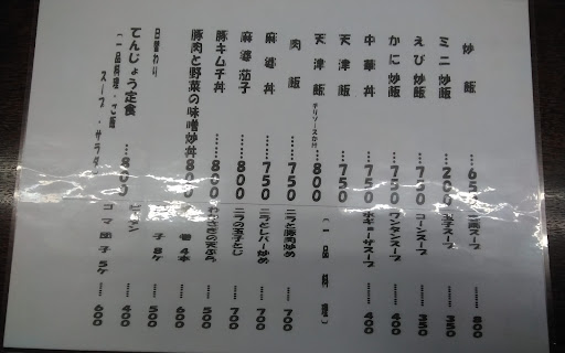 Read more住吉の街中華屋さん。 ちゃんぽん、鶏ガラ系しっかり味で街中華らしい味です。しっかり煮がきいていて具は柔らかめ、写真は牡蠣ちゃんぽん、50円+で中ぶり牡蠣3個乗っているのはお得感あります。 半炒飯しっとりしっかり味。ラードのコクがありおいしいです。後半は味の濃さがきいて、きつくなります。セットで食べるのが良いと思います。 麻婆麺は勝山にあった名店とは違いますが、おいしいと思います。もっと若ければ麺完食後、ダンクライスで行きたいですが、今は単品で十分です。 何を食べても対面のお店より半歩リードしていると思います。注文から提供まで5分程度しかかからないのは素晴らしいと思います。 日替わり定食も平日にはあるみたいですが、平日には行かないので、食べたことはありません。