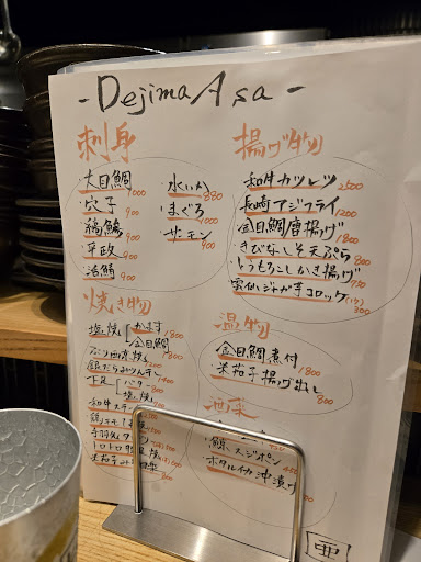 Read moreMy second trip to Japan brought me to Nagasaki, a city where I really wasn't sure what to expect. After a disappointing dinner elsewhere, I was on the hunt for a meal that could lift my spirits, which brought me to Dejima Asa. I don't have a Japanese phone number, so I took my chances and showed up with no reservation on a Monday night. I must've been lucky today because they had an open counter seat!