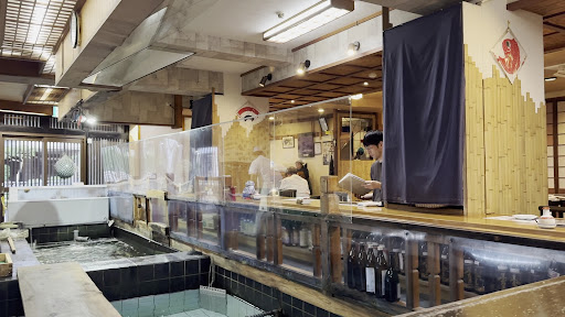 Read moreThis is a large restaurant with Western style and tatami seating. We noticed later we were seated above some aquarium where fish were caught and butchered which wasn't really to our liking, but I guess this guarantees the fish is super fresh. Ohter than that, it was faultless, very nice service, a large restaurant whch did fill up but probably it is easier to find a table . We had sweet potato tempura, daikon salag, agedashi tofu and a mixed sushi set. All were superb, price was good (mid range) . Would...