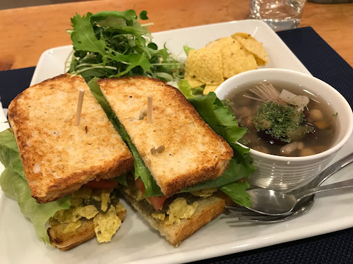 My husband and I ate here 3 times on our stay. The curry has many veggies. My husband loved it. I had the potato salad sandwich. Bread is delicious. The potato salad inside is not like western style. Its potato chunk with huge slice of tomato and avocado with a delightful basil sauce. I never thought about having potatoes and avocado together before. It’s quite delicious. For dinners we had the hummus sandwich and vegan combo C which has rice, soup, salad and some seasonal side dishes. I liked it so much i ordered it twice. The little vegan candies are scrumptious. I bought 15. Nice little cafe with a cozy atmosphere. All employees are kind. Owner is very welcoming. From the girl with glasses in the...