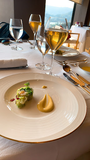 クリスマスディナーいただきました。 至って普通。 #手長海老とたらば蟹のクリームと人参のムース。 (素材の味全く無し、無駄な酸味。一口で連想したのは、飲み過ぎてトイレ行って食べた物を⁉️した時の味!を連想した。) #長崎真鯛とほたてとレッドピタヤのソース (味は大変美味しかった、でも真鯛をが小さく切っている分存在感が全く無い。) #ボアグラのテリーヌと鴨のローストラタトューユと洋梨とともに (鴨のローストは絶妙、味付けも良かった、そのまま食べた方が美味しかった。) #メインの長崎和牛サーロインのロースト、レフォースソース (肉は柔らかくとても素材の味が生かされて美味しかったです。デミとホワイトソースで構成されてたがデミは最悪、缶詰かとうたがった。ソース無しの方が美味しかった。) #デザート 普通!演出は要らん、美味しい逸品を! 全体的にレベルが低い!ワインも種類が少ない クリスマスだからドンペリ?この料理にドンペリ勧める理由がわからん! 発想や料理全体の構成、全然面白くない! ワンパターンなデザイン。 長崎の有名店でレベルがわか...