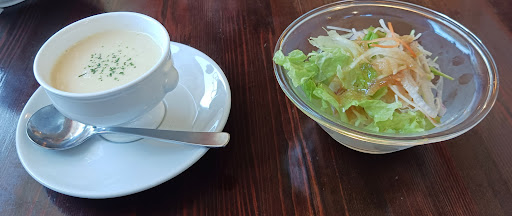 本日のおすすめの1つである若鶏の赤ワイン煮セットを頂きましたが鶏肉なのに肉が牛みたいにとろけて柔らかくて最高でした、スープにサラダ、ライス、更に食後のドリンク付きで1200円程度は安い、スープとしてきたコーンスープも絶品、メイン料理を肉や魚など3種類の中から好みを選べるためいいのでは?