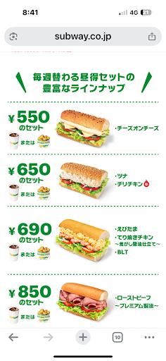 Read more店長らしきスタッフの出入りが土足の床に手を着いてカウンターをくぐり、調理スタッフ用タッチパネルは調理用ビニル手袋のまま触るスタッフと土足の床に手を着いて出入りする店長らしきスタッフが両方とも触るのは客席に見せるのに、アルコール消毒をしてる姿は客席から見えなかったし、五人も居る狭いキッチンで生野菜提供があんなに遅くて不衛生なら、近いうちに集団食中毒が発生しても不思議ではないと思いました。 サブウェイの醍醐味の一つには焼くか選べるのに、焼きのテイクアウト出来立てが冷たかった開業間もないサブウェイも長崎市だけだと思うし、レギュラー二個で30分も待たされるサブウェイたぶん長崎市だけ。あたしなんか忙しい朝は焼き立てを一人で七人前同時調理で10分遅れただけで文句言われる個人なのに、世界チェーン企業だからって甘過ぎるんじゃないですか?10年前の福岡天神の早くて美味いサブウェイが恋しくて、ワクワクしながら10年ぶりに買いに来て、私の落胆と悲しさはサブウェイ社員以上だと思います。生鮮サンドで30分待たされても怒れない時代だからスピード改善できないとしても、放置時間が原因で食中毒なったら企業責任。でも結局は消費者が腹壊すことになるなら二度と買いません。ビニル手袋でマスク触ったキッチンスタッフもなぜサブウェイが許すのか不思議ですし。 あと最後に、企業都合と思うけど10年前よりパンが小さくなった気が...