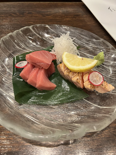 Delicious food! We started with some sashimi that was fresh (chutoro and salmon). The pig feet was so tender and seasoned well. I forgot what the pepperoni-looking dish is called but it was yummy and new. Then we ended with grilled chicken, which also tasted great. I didn’t get a pic of the tamago unfortunately- we ate it so fast because it was so good. Made from scratch so it was layered and hot.