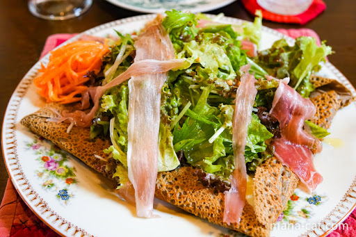 お食事ガレットは野菜もたっぷりだけど、チーズや生ハムとの分量バランスが絶妙で、 メニューを考える上でのセンスが光っている。