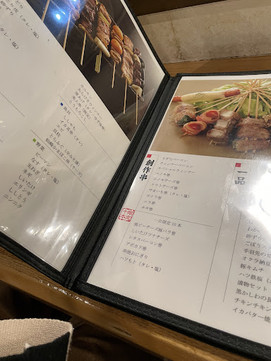 焼き鳥は種類が豊富で、軽くお酢に漬けたキャベツが添えられており、口直しに爽快感があって、食がいっそう弾みました。 食材は、地元産にこだわっており、とても新鮮でした。 種類は、鶏肉から豚、魚介類、野菜とフルラインナップで多岐にわたっていますので、色々と楽しめました。