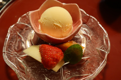 ☆食前酒(梅酒) ☆3種前菜(栗の甘露煮・フグの卵黄焼き・ホタルイカ酢味噌) ☆お造り(車海老・まぐろ・鯛・ブリ) ☆茶碗蒸し ☆蓋物(無花果の餡掛け) ☆焼物(銀ダラ味醂・ツワ佃煮) ☆鉄板焼(地物和牛・エリンギ・ピーマン・かぼちゃ・ナス) ☆揚物(海老・かぼちゃ・オクラ・エリンギの天ぷら) ☆イクラちらし寿司 ☆お魚のお味噌汁 ☆デザート