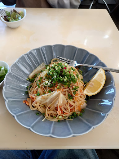 今回は パスタセットで サラダ・パスタ・デザート・ドリンクで ¥1,700-程 味付けもバッチリで レモンカットがでかいっと思ったが 全部ギューッと絞って入れてもいーアクセントになりました!!