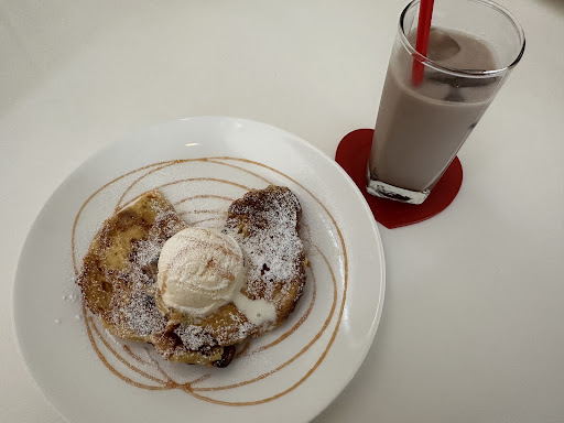 これはすごくおいしかったです! 甘すぎず、上にアイスが乗ってきます。程よく溶けたバニラアイスがソース代わりになって程よい甘さになります☺️ ドリンクはアイスヘーゼルナッツチョコミルク🥛これまた程よい甘さで程よい冷たさ!最高の取り合わせでした!
