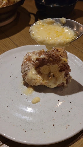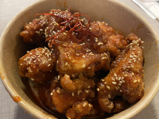 Aaaah-amazing!!! So glad we stopped here for dinner ! Welcoming vibes - friendly locals at the bar -food phenomenal ! We had the kimchi combo- spicy rice cakes(tebboki), japchae, and 1/2 & 1/2 fried chicken…. Our friendly neighbors sent us a platter of large Korean pancakes to try! Perfect for us, a family...