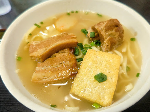 【のぶたと南の島生活inやんばるを食べ尽くせ❗319】 県道84号線沿いは沖縄そば屋が並ぶ通称「そば街道」と呼ばれる北部地区の観光名所の一つ。 そこに遠い昔から「ブラジル食堂」というブラジル料理と沖縄そばをメインとした定食屋がある。 店名が異質なので一度でもそば街道を通ったことがあれば必ず記憶の片隅に残っているだろう・・・・もちろん、nobutaも昔から知ってはいる。ただ、お店の敷居をまたいだことは一度もない。 名護支店に赴任してから8ヶ月。この機会に行かなければチャンスは二度とないかもしれない。 そんな事を考えていた11月末の某日、ジャングリア関係で為又に出向いていたnobutaは、帰り道に立ち寄ってみることにした。 店内はかなり広々としている。 芸能人のサイン色紙等が飾ってあり、人気店なのが分かる。 メニューを見ると、沖縄そばは豚骨ベースらしい。 今では豚骨ベースの沖縄そば屋も珍しくなくなったけど、オープン当初から豚骨ベースだとしたら、沖縄そば屋の豚骨ベース元祖レベルだろう(笑) 沖縄そばメニューは、種類の如何を問わず 特大 800円 大 750円 小 650円 という価格設定は素晴らしくリーズナブルである。 種類も定番の三枚肉、本ソーキ以外に、野菜そば(野菜炒めオンリー)、牛肉そば(牛野菜炒め)、アーサそば、3点そばがある。 3点のうち、2点は三枚肉、本ソーキだと分かるけど、もう1点が分からないので特大サイズの3点そばを注文してみた。 登場したのが最初の写真。 アップがこちら。 残り1点は肉ではなく、厚揚げ豆腐である。 これは面白い。 沖縄のスーパーでは厚揚げ豆腐がかなり高い。だから、nobutaはなかなか厚揚げ豆腐を購入しない。 食べてみると炙っているようでかなり旨い❗️ 出汁は豚骨ベースだけどあっさりした味わいに仕上がっている。麺は三角屋製麺の普通麺。 特大は超大盛りなので、大、若しくは小でも十分だと思う。三角屋製麺は、濃い出汁にマッチするので、豚骨はもっとこってりしてる方が合う気がする。 三枚肉は煮込み具合がベストだったが本ソーキは硬すぎるね。