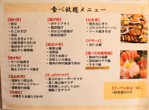 Read more団体で入ったのですが、2時間食べ放題コース注文しても1時間くらい料理が来なくて、また再注文したのですがまったく来ませんでした。9時くらいに食事が終わる予定だったのですが、そこから2時間待っても最後らへんに小籠包と水餃子が来ただけで唐揚げ頼んでるのに1度も来なかったです。このお店は絶対におすすめできません。あと幼稚園生とかの料金がメニューにかかれてないのにあとから急に付け足されます。このことを伝えたら店員逆ギレしてくるので、行かな...
