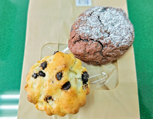 さて、5月半ばのランチタイム。支店を出て世冨慶の部落に向かって散歩。東ハイパス向け通り沿いにあるケーキ屋が気になっていたんです。そう、nobutaはランチがケーキでも問題ないのです(笑) ところが、お店は定休日(^^;) さて、ここから名護中心部にランチを食べに戻るのは至難の業。どうしようかとブラブラと東江小学校向けにUターンしました。 まだ未訪問のマフィン屋さんがあるのです。 外観から見える店内は雑貨屋さんなんですけど、スコーンが有名な『シュシュプラス』さん。 PAYPAYが使えるお店と書いてあるのですが、この日はセブンイレブンとのコラボで30%還元を発表したためにランチタイムに通信障害を起こしたいわくつきの日(笑) 当然、シュシュプラスさんでもPAYPAYでの支払いができずに大変でした(^^;) 店内に入るとおしゃれな雑貨が並びます。 奥の支払いカウンター傍にスコーンのショーケースがあり、上の段がスコーン(250円)、下の段がスコフィン(300円)です。 色々な種類があり、お店のお姉さんは『大人に人気なのは・・・・子供に人気なのは』と勧めてくれました。 nobutaはジジィですが、お子ちゃまなのでチョコ系が好きなのです。 スコーンから チョコチップ を、スコフィンから ココチョコ を選択。 それが最初の写真❗ 職場に持ち帰って、焼菓子でランチですよ(笑) 初体験のスコフィン。スコーンよりもしっとりしてる感じですね~美味しいっす。 大人に人気なスコフィンは、紅いもチーズ、さつまいもゴロゴロなんだそうで...