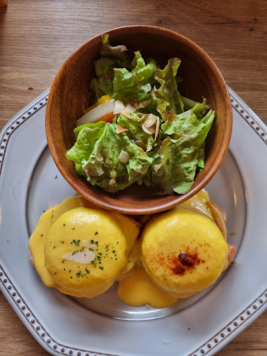 My boyfriend and I came here to have breakfast. We ordered the Eggs Benedict (set with drink 1500 yen) and French toast with bacon (always set with drink 1200 yen). When we entered nobody really takes your order, you choose what you want to order with a menu that was left on a chair and walk to the register, order and pay. Probably because it's not a restaurant but a cafe. Still a strange dynamic. Our mistake was to order a drink that was not coffee and that's on us, this place is famous for that. Even if we ordered coffee though, it felt overpriced. Both plates came with a salad, no other side. The bacon looked like the ones you can buy for cheap and the Eggs Benedict wasn't spectacular. I'm not saying it wasn't tasty, but for the price we were expecting something more (since in Okinawa you can actually find many restaurants where with the same price you get so much more). Maybe if we ordered coffee our experience would have been a bit different, but as for the breakfast, it was overpriced. We finished pretty fast and again, nobody really acknowledged us when we were about to leave. Only after we thanked, they thanked us back. Just an unusual customer service, not the best not the worst (maybe because we didn't order coffee?). But again, the food is not bad and I'm sure the coffee...