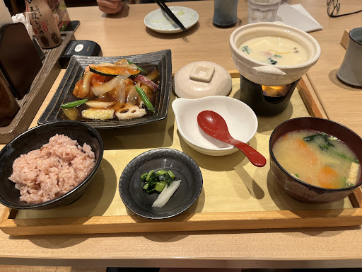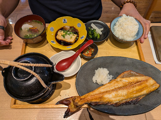 -Gokuku inside the Aeon Mall was a great find. -I was wandering around, went upstairs & found this great Japanese restaurant. -I was in the mood for fish too. -They have several combos to pick from, more than several, I shoukd reiterate & say A LOT. -I ordered a whole fish set that came w/ scallop miso soup & other small sides. -That set was around $10 USD.