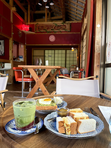 A small yet cozy and peaceful cafe tucked in the forests of Nago, that offers a variety of delicious foods and drinks! My partner and I visited for what supposedly a short breakfast (we ordered the omelette sandwich, sukiyaki beef sandwich, matcha latte and cafe latte) but stayed much longer after meeting Chicho, Sugioka-san’s (owner) cat 🐱. We also ordered delicious dessert (burnt cheesecake and strawberry matcha) as precious Chicho slept in my lap, purring 🥹. Sugioka-san was also very pleasant and shared the story about her cafe and Chicho with us. Certainly a memorable experience that made it difficult to leave.