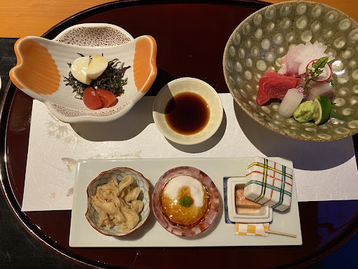 Read more제일 비싼 코스 먹었는데요 음식 자체는 맛나요. 근데 다이닝 하기에는 분위기가 100% 만족은 아니에요. 기념일이라 룸으로 가고 싶었는데 룸은 룸차지가 2만엔이라네요..ㅋㅋㅋㅋ 어이가 없긴 했는데 가보고 싶었던 데는 노키즈라 애기 때문에 어쩔수 없이 왔는데 그냥 단품이나 적당한 코스 드시면 될 것 같습니다. 봉사료...