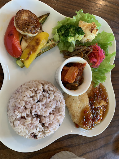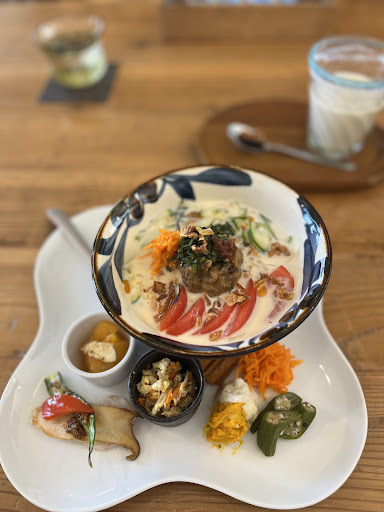 Read more名護市では少し珍しいオシャレな自然派カフェお食事処だと思います✨彩豊かなプレートが毎週変わりで楽しめるので時間ができれば寄りたくなるところです。毎週の楽しみになるほど、見た目も味も、素材も良く、お店も手作り感あり、清潔感あふれ、とても心地よいスポットです‼️‼️締めの飲み物は絶対つけたほうがいいです!定番の紅茶コーヒーもわかりますが、オリジナルの方が断然お勧めです。スパイシーなホットティ最高でした あと、販売も魅力的で、食べる生姜はイチオシで、鰹節醤油入っているのでだしが効いてて、そのままで充分美味しく幅広い活用方あるのですが、ドレッシング、万能調味料として使えるため、すごく良いです‼️‼️ けっして私はマカイさんの回し者ではなく、どハマりした1ファンですので熱量ご了承ください🙇♀️