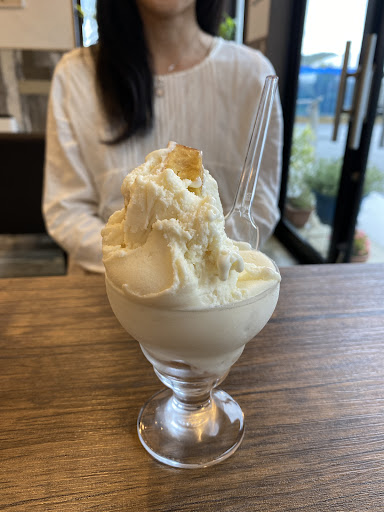 Read moreいつマークしたかは記憶に無いのですが、中部地区から名護に転居し住まいの近くにいい感じのお店がないかGoogleマップをいじっているといってみたいにマークしていることに気がつきGW前半の日曜日、仕事も半日で終えることが出来たので一人で食後にコーヒーでもと思い伺ってみることにしました。とてものどかなエリアで畑が点在しているようなところにあるとは思いませんでした。 はじめての来店だったのでお店の方にオススメを尋ねたところ、エスプレッソ・アフォガードとのことで注文!レジカウンターに円盤型の焼き菓子が目についたのでよく見てみるとフィナンシェだったので併せて注文しました。注文を終えたところでカウンターの奥から古代エジプトのような衣装にメイクしたコスプレお兄さんが出てきたので気持ちも和みました。 はじめて来店だったので注意点のかかれた説明文を見ながら出てくるのを待ちました。出てきたアフォガードは思いのほか小ぶりでしたがカップがクッキーになっていて、カップまで美味しく食べられます。自家製のジェラードとエスプレッソも相性よく美味しくいただきました。 フィナンシェは外は香ばしくサクッとした食感でエスプレッソの濃厚なコーヒーの口休めにもいい感じで美味しくいただきました。 今回は一人でいったのですが50過ぎたオッサン一人でアフォガード食べる雰囲気ではないので次回は娘か相方と一緒にいってみたいと思います。 2度目の来店は相方とティータイムにお伺いしました。 今回もアフォガードを注文しました。 ジェラードのクオリティーが高いと相方も絶賛!帰りにテイクアウトでドラフトコーヒーなるものを注文。目の前でビールのように注いでくれて見た目にも映える演出です!味はスッキリタイプですが飲みごたえも感じるコーヒーです。 ちなみに以前あったフィナンシェは現在はつ...