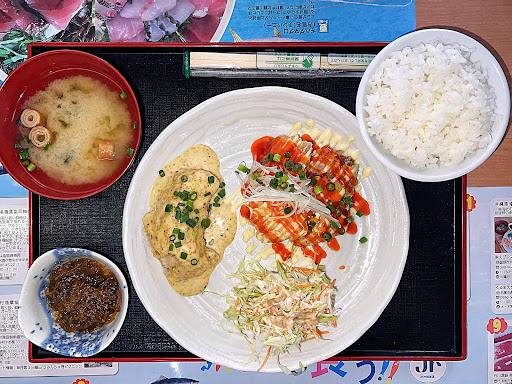 Read moreLocal restaurant that sells many types of Chirashi and fried fish dishes. Look for the special of the day as you enter the restaurant. No English sign board outside. Need to know the number for the dish so you can select it from the self service kiosk. Give the ticket from the kiosk and hand it to the guy just across from the kiosk and he will hand you a number. No English spoken so I had to keep an eye on the preparation and pick-up area to determine when to pick up food. The squid ink soup was very good. We both...