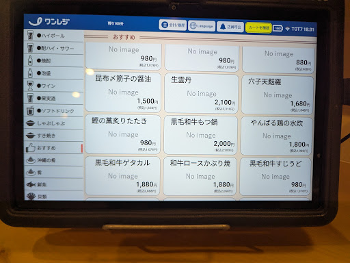 注文はタブレットなんですが、画面上に飲み放題の残り時間が表示されます。時間終了の画面が出るのですが、それを消すとまだ飲み物が0円のメニューが出てきます。 試しに頼んだら出てきました。多分 閉店までいけると思います。 ホールのスタッフさんは若い女の子ばかりなのであまり気にされないですよね。 そこは素敵なサービス、来店動機のひとつとして残していただきたいです。