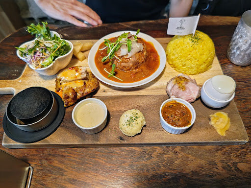 ドリンク・デザートのSPセットを加えると+450円。 大人ランチは、ハンバーグ、タンドリーチキン、ローストポーク、カレー、シチューなどお店のメインがほぼ全部乗ったプレートで、見栄えからもお得である。