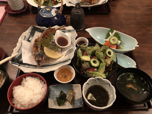 After visiting Shuri castle, I was handed a flyer of muslim friendly restaurants in Okinawa and this was listed as one of them, and since my wife and I were traveling to the north of Okinawa anyway, we went here one evening in april 2018 (so this review is three years late) and it was the most delicious food experience we had in Okinawa and one of the best we had in Japan. I especially enjoyed the fried kurugun (an Okinawan fish), in the charming little private room. The lady owner of the restaurant was most friendly and welcoming and interested in our background and asking if she could post something about us in her blog. While planning the meal for us, based on our preferences and some dietary restrictions, she sat down next to us taking out a fish encyclopedia explaining all sorts of fish they served. Altogether, a relaxing dining experience. We promised ourselves to go one more time...