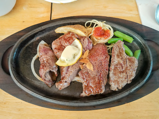 Delicious, affordable, slightly upscale steak spot in Nago. Self serve soup, salad, and drinks ensures you never go thirsty or hungry. Reasonable prices for really good quality steak. I recommend this place for visitors looking for a familiar steak experience! They do not ask your preference on how well done- expect a default of medium Rare. Would come back on the 29th when they offer a half...
