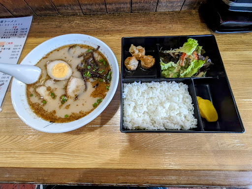 Read more玉名に遊びに行く際に寄らせていただきました。以前から存在は知ってましたが入る勇気がなく今回は思い切って入店しました。 昔ながらの佇まいで、小上がり好きな自分に嬉しい畳の小上がり席が二つ。家族できたのでこちらに迷わず着席。ラーメンと焼豚ラーメンをLに変更。焼飯と餃子を注文。ほどなくラーメンが登場。ちなみにLは麺二玉、Mは1.5玉だそうです。 味は熊本ラーメンどまんなか。間違いないうまさです。ペロリと食べてしまいました。食の細い下の子もおかわりするくらいあと引くおいしさでした。 次回はにんにくラーメンにチャレンジした...