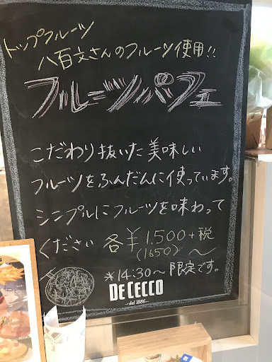 メニューを見ると、パスタやお肉料理などもありますが、瑞穂区の有名なフルーツ専門店のフルーツを使った季節のフルーツパフェが3種類。 アップルマンゴー、白桃、メロンでメロンと白桃で迷いましたが白桃にしました。息子はマンゴー。 ドリンクは、柑橘のソーダとマンゴーとパッションフルーツにしました。 パフェは1500円でした。 サーヴしていただいたパフェは上質なアイスを使っていて、ちょっと目新しいナタデココ?と小さなスポンジが少しとたっぷりの桃。 美味しかったぁ〜。 でも、正直言うと、品が良いと言うのか…もう一捻り欲しいかな? でも、メロンパフェ狙いでまた近いうちに...