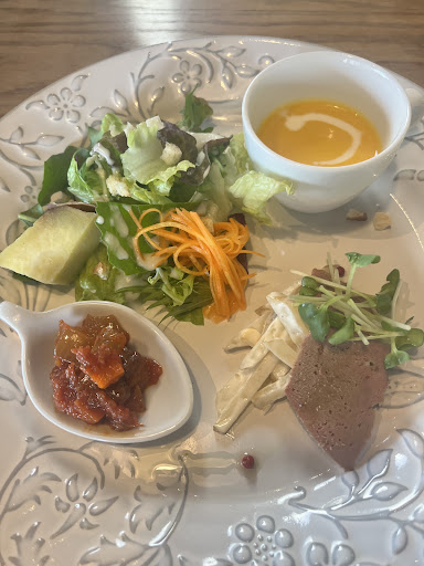 ええやね~!!自然感あふれる佇まいの中でのイート(^^)なんかピクニック気分だがね~( v^-゜)♪程よいアルデンテの麺とミートソースの絡みは半端ないっす(^^)オードブルって言うかサラダ+1の登場にはパピプペポ(^¬^)お隣の子連れヤンママさん連もオッパッピ~してましたわ♪
