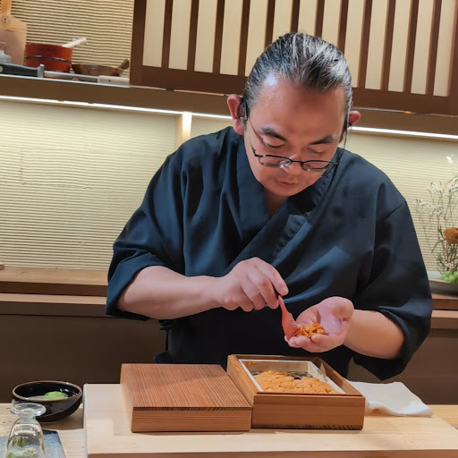 Swordtip squid (nigiri) Flathead (nigiri) *Simmered sake Horse mackerel (nigiri) Sesame tofu (appetizer) Conger eel and conger eel, long fish (appetizer) Prawn, Senshu eggplant, scallop, ark shell, Chinese yam, mustard miso, egg yolk (appetizer) Ichimi sea bream (nigiri) Bafun sea urchin (nigiri handed to you) Pomfret, chive soy sauce (nigiri) Sea salmon, onion soy sauce (nigiri) Stewed octopus (appetizer) Corn (Kankan Musume) Potage style Aged medium fatty tuna (nigiri) Aged lean tuna (nigiri) Sardine fish ball soup Egg