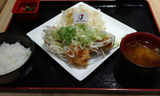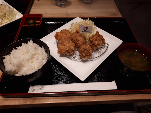 Read moreモール内で食事。話題にはなっていたが行った事が無かったので入ってみた。 取り敢えず金賞を謳っているからあげ定食を注文。写真見る限りサイズはさほど大きく無いと思われたので(大)990円にしてみた。 平日で定食を頼むと無料ドリンクMが付くとの事で烏龍茶を頂けた。有難い。 店内は明るく、平日だからか空いていた。余裕ある感じ。見えているスペースでは調理していない様で、店内は油臭く無い。 さほど時間掛からず呼び出し有り、からあげ定食が出てきました。カウンター辺りに水と、マヨネーズなど調味料が並んでいた。からあげにはマヨネーズと言うことでいくつか頂く。ただマヨネーズがSSK。この辺りが3流感漂う…。 肝心のからあげですが、結構柔らかめ。食感は多少寂しい位の勢い。スパイスとマヨネーズを掛けてみたが、完全に調味料に負けてしまっている感じ。もう少し肉肉しい感じがある方が個人的には好みだったりする。 食べ進めると、白い皿の上に赤い肉汁が…。もしやと思い半分食べて中を見てみると肉が赤い…。加熱不足で柔らかく、味も調理感無かった?と思わせた。からあげで赤い肉汁が出て来るのも珍しい。また余り好ましいものでも無い。 この辺りは改善すべきと思われる。このからあげがどの店舗でも出て来...