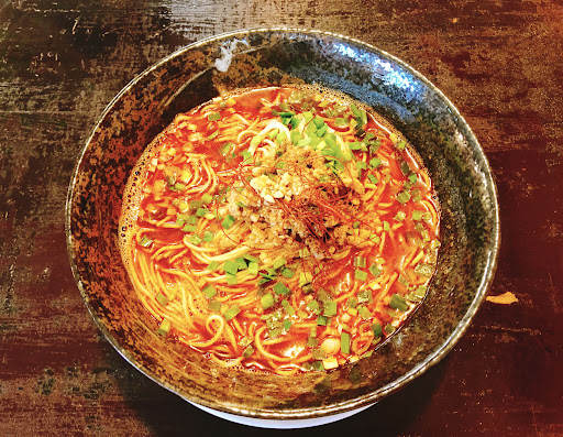 Read more注文は麻辣担々麺(700円)。 真っ赤なスープの上に挽肉、山椒、糸唐辛子、 それを囲むようにしてネギ。 スープをひとくち飲むと、辣油の風味はあるものの、ゴマの風味は今ひとつ。 と思いきや、食べ進めていくうちにゴマのコクが出てきました。麺にしっかりと絡みついており、食べれば食べるほど旨味が増してくる濃厚な担々麺です。