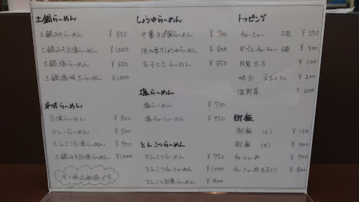 ラーメンは土鍋ラーメン、旨しおラーメン、九州とんこつ(棒麺)、しょうゆラーメン、辛味ラーメン、カレーラーメンをベースにトッピングなどでバリエーションが広がっています。