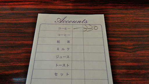 今回、注文したのはホットコーヒー330円と無料モーニング。 無料モーニングの内容は・・・ 半トースト 茹で玉子 ヨーグルト キッチンが奥にあり、コーヒーの入れ方は不詳ながら、手抜きの無い香り高いブラックが合う美味しいコーヒーでした。 無料のモーニングも、コーヒーの値段からして十分満足度の高いレベルで、バターが芳ばしい食パンのトースト、茹で玉子はSサイズ、ヨーグルトはプレーンではなく、一工夫のバニラ味で美味しくいただきました。