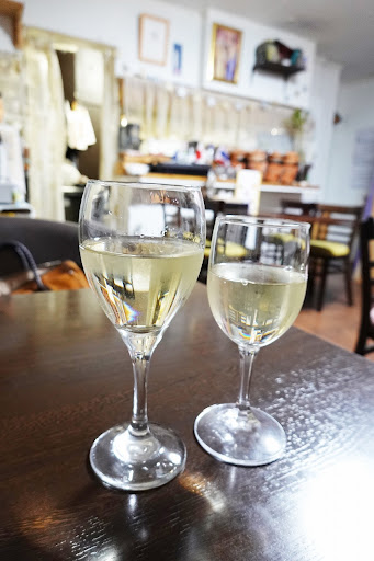 白ワインいただきました♪ グラスが違うのも面白いです(^^) 旦那さんが一生懸命探していて 「無理」ってあきらめていて可愛かった(笑)