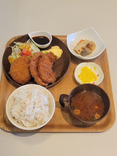 メニューが文字のみで写真が無いので配膳されるまでわかりません。野菜がやや多めで彩りも綺麗です。年季の入った味噌汁の取って付きお椀も一新され食器もとても綺麗に成り見映え良い写真が撮れるようになりました。