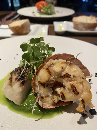 Posh fine dining place on the 18th floor. Reservations are required. Good food, lovely presentation, nice selection of steak, lobster, bream, as well as soups and so on. There’s a good few beers to choose from and you get a glass of brut with your course too. If you’re a fan of these kinds of places, add an extra star, but for me I always have to go somewhere else for a top-up afterwards because everything is just too small! I guess I’m uncultured or something. Service was excellent, the waitress was very friendly and kept us topped up with drinks and bread. It’s pretty expensive too. Nice for a birthday or date night. If you’re a quantity over quality person though I’d...