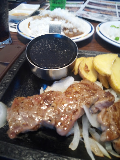 We went here mainly since we wanted to eat a steak the "Western" way. So not cut into small pieces, but we wanted to do on our own. We arrived slightly after 13:00 and the restaurant was one third full or maybe even less. During the lunch time, they offer a lunch menu for really reasonable prices (max is around 2000JPY as far as I noticed). Each item can be purchased from the menu as it is, or with a surcharge roughly 300Yen for a "salad bar", which basically means, you get your main dish and you can also visit the salad bar, which offers not only salads, but also bread, rice, curry, soups, coffee, which is counted in the surcharge. As for the steak, we were not asked how we want it, but despite our worries, the steak was juicy and done well (not well done), medium rare or almost well done. The sauce that came with the steak was made of soy sauce and I was guessing also garlic. Wine for 250JPY+tax and it wasn't bad at all, in fact we were surprised that the wine was quite good. As for the salad bar, we tried onion soup - good; curry with rice - good, but my wife said it is curry for kids, so not spicy. However, you can add "curry spice" which is basically just chilli with hints of kumin and little bit of curry powder. At the salad bar, you can also choose from 5 (at the time being) sauces for your steak. Salad and dressings were fine too.