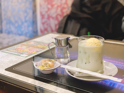 「せんじミルク氷」500+50円 かき氷が食べたくて注文。 プラスでミルクをつけて正解でした。
