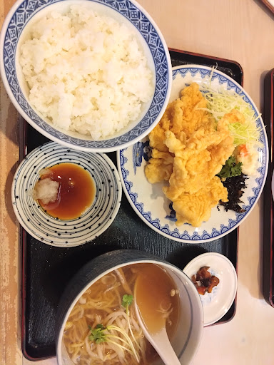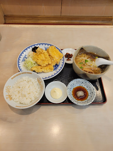 Read more目的のお店が休みだったので、急遽お昼に来店。 唐揚げ定食、チャーハンコンビ(ラーメンセット)、餃子を注文。 唐揚げは薄切り肉を白い衣で揚げて出てきました。 あまりサクサクはしておらず、味がない? 少し着いていたかも知れませんがご飯バクバクはいけない。と思ったら付けダレ(ポン酢かな?)と大根おろしが… 唐揚げに…?! まさか油が汚れるから衣に味付けてないとか??? チャーハンは…申し訳ないが不味い。 味が…だし、なんかべしゃべしゃ。