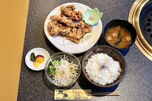 駐車場は店舗正面にあり、店内はテーブル席や掘りごたつ席があるゆったりとした造り。 開店直後の一番乗りだったが、すぐさま3卓が埋まった話題のお店。 近所に鶏焼肉の専門店がオープンしたと知って気になっていたが、平日に限り唐揚げ定食があるとの事。 逆を言えば平日のランチでも鶏焼肉を楽しめるという事だが、ビールが飲みたくなりそうなので今回は唐揚げを。 お値打ちなランチメニューはこの1択なのは、今後の課題にも感じる。 10分も待たずに提供された唐揚げ、写真などでの案内はなかったがサラダが付くのは嬉しい。 大きめにカットされた伊勢鶏はモモとムネのミックスで、ほぼ半々の割合。 独特の旨味を生かすため下味は薄めで、しっとりのムネとジューシーなモモの食べ比べが楽しい。 特にモモは甘い脂を味わえ、ご飯もかなり進む美味しさ。 そのご飯は炊きたて艶々、大盛無料との事で大盛で正解。 唯一残念だったのは、開店直後の一番乗りでランチ注文なのに伝票には生ビールが。 他の席で飲んでる客はいなさそうだったが、飲みたい気分を我慢してるのにそれはいかん。 最後だけモヤモヤしたが、次は運転手を誘うか名鉄を利用して鶏焼肉を堪能したい...