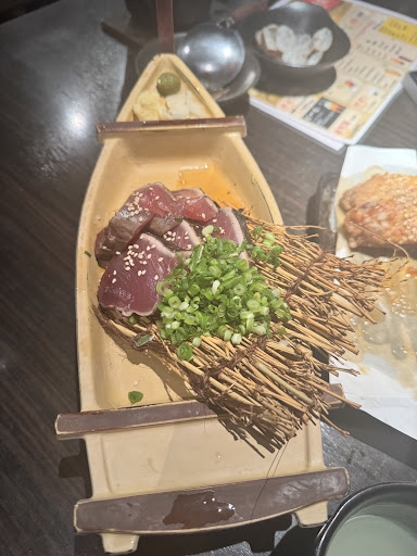 Creatively presented dishes based around bonito & skipjack tuna in a stylish black & red space.